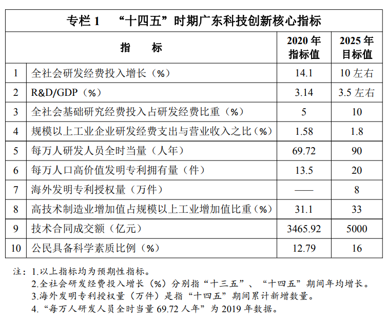 广东省科技创新“十四五”规划