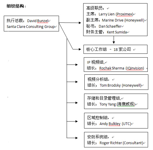 PSIA聯(lián)盟主要為會員單位提供不需要任何許可授權(quán)的標準和規(guī)范,并對整個行業(yè)秉承“開放、合作”的原則。目前,為五個工作組提供了統(tǒng)一的標準和規(guī)范,包括IP視頻組、視頻分析組、存儲和目錄管理組、地域控制組和安防系統(tǒng)組。