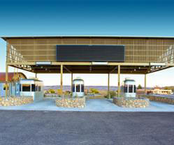 美國(guó)BIGEnterprises,公司開發(fā)了一款新型的檢查站崗?fù)ぃ庥^新穎、美觀。該崗?fù)さ臉?biāo)配裝置為球面窗戶,便于增加余角的可見度。型號(hào)偏大的檢查亭還會(huì)配置休息室和辦公區(qū)。